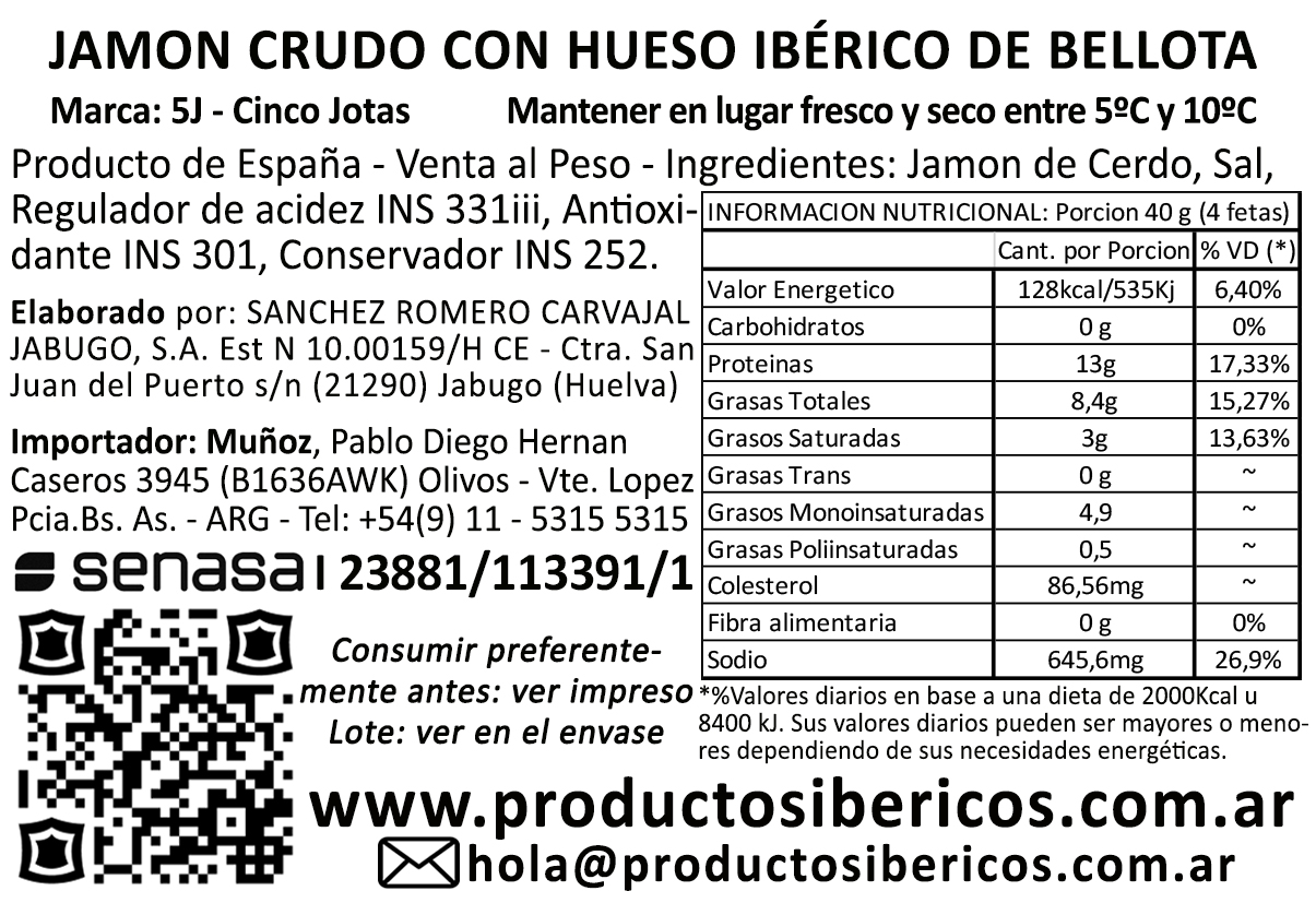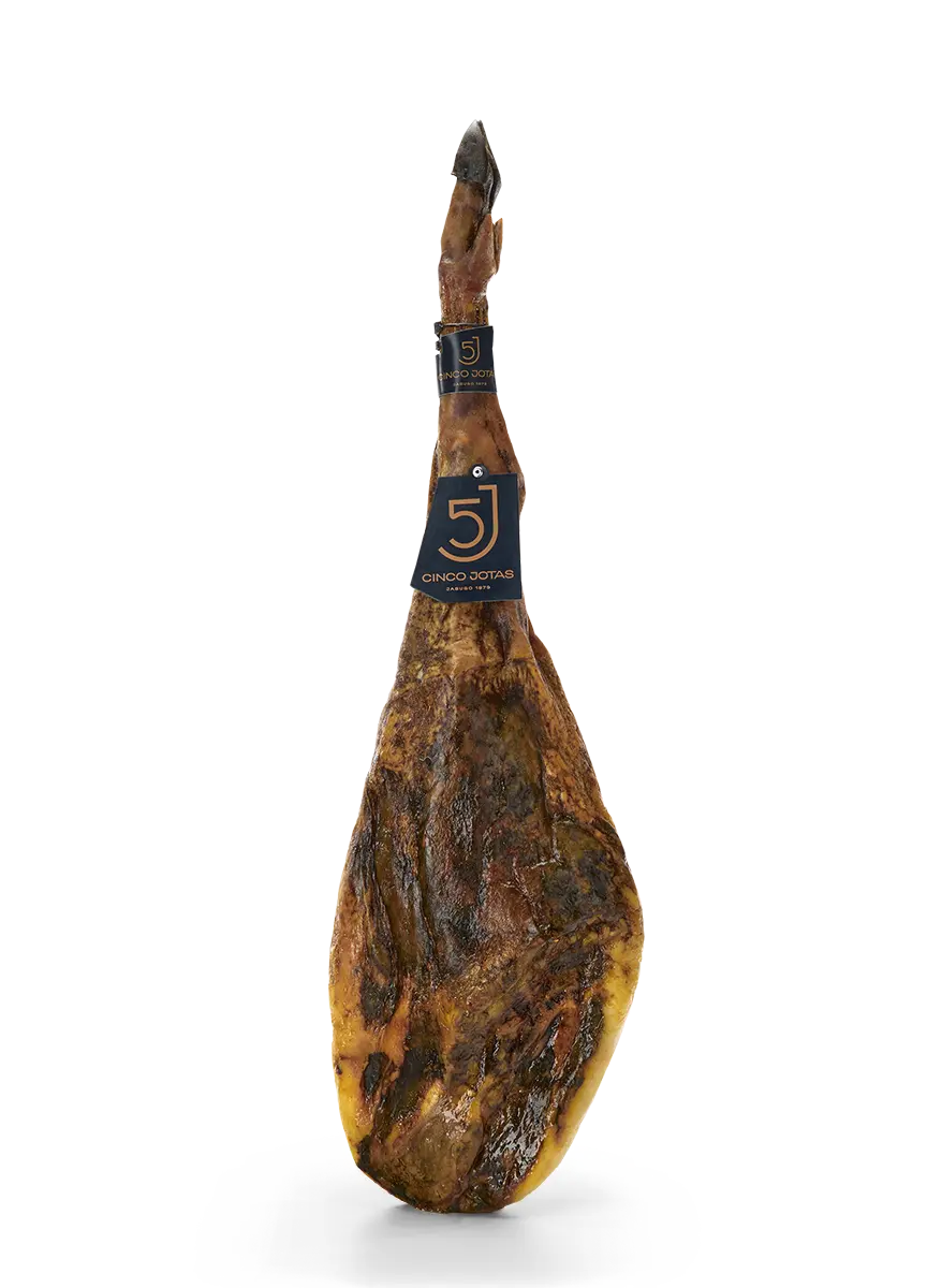El Jamón Ibérico de Bellota por excelencia en su tradicional formato. Una pieza exclusiva entregada desde las bodegas centenarias de Cinco Jotas. Cada pieza es única y responde a las máximas expectativas de sabor, textura y aroma para seducir desde el primer corte a cada uno de tus sentidos. Crea tu propia obra esculpiendo un auténtico Jamón Ibérico de Bellota Cinco Jotas a corte de cuchillo y sorprende a todo el mundo con los matices propios del mejor jamón del mundo, recién cortado.